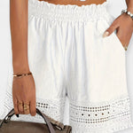 Lehké a ženské, tyto letní šortky kombinují romantické detaily krajky s praktičností kapes. Jejich lehký střih a jedinečná textura je činí ideálními na procházky, dovolené a uvolněné letní chvíle.