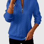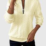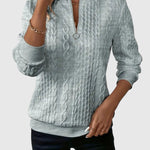 Klasický a praktický svetr, který spojuje kouzlo copánkového pletení s funkčním zipem u výstřihu. Měkká příze je příjemná na dotek a žebrované lemy na rukávech i spodním okraji drží tvar. Poutko na jezdci usnadňuje zapínání a dodává moderní detail.