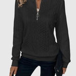 Amalie — Pletený svetr s copánkovým vzorem na zip
