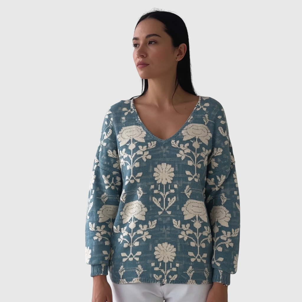 Zažijte komfort a nadčasový styl s tímto svetrem. Ideální pro každodenní nošení a odpočinek – tento lehký pletený kousek okouzlí svou pohodlnou siluetou, elegantním V-výstřihem a decentním vzorem. Nezbytný základ pro každý šatník. Vyroben z kvalitního materiálu s hmotností 210 g a jemnou rib strukturou nabízí výjimečnou měkkost, vysokou elasticitu a lichotivý střih.