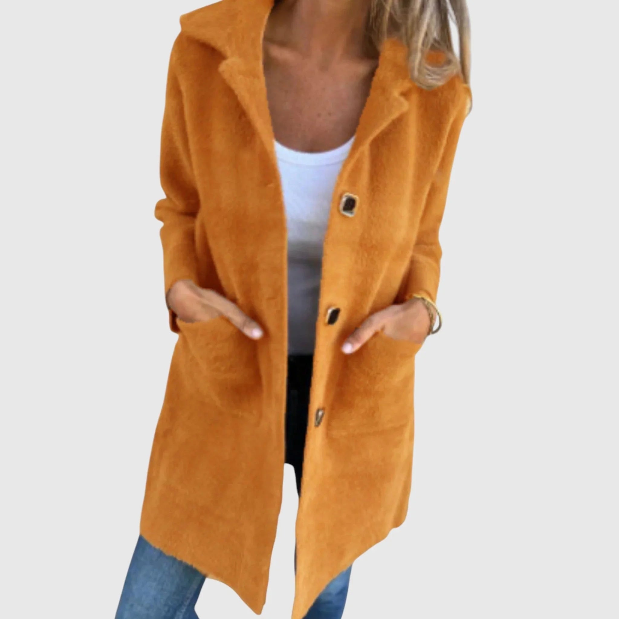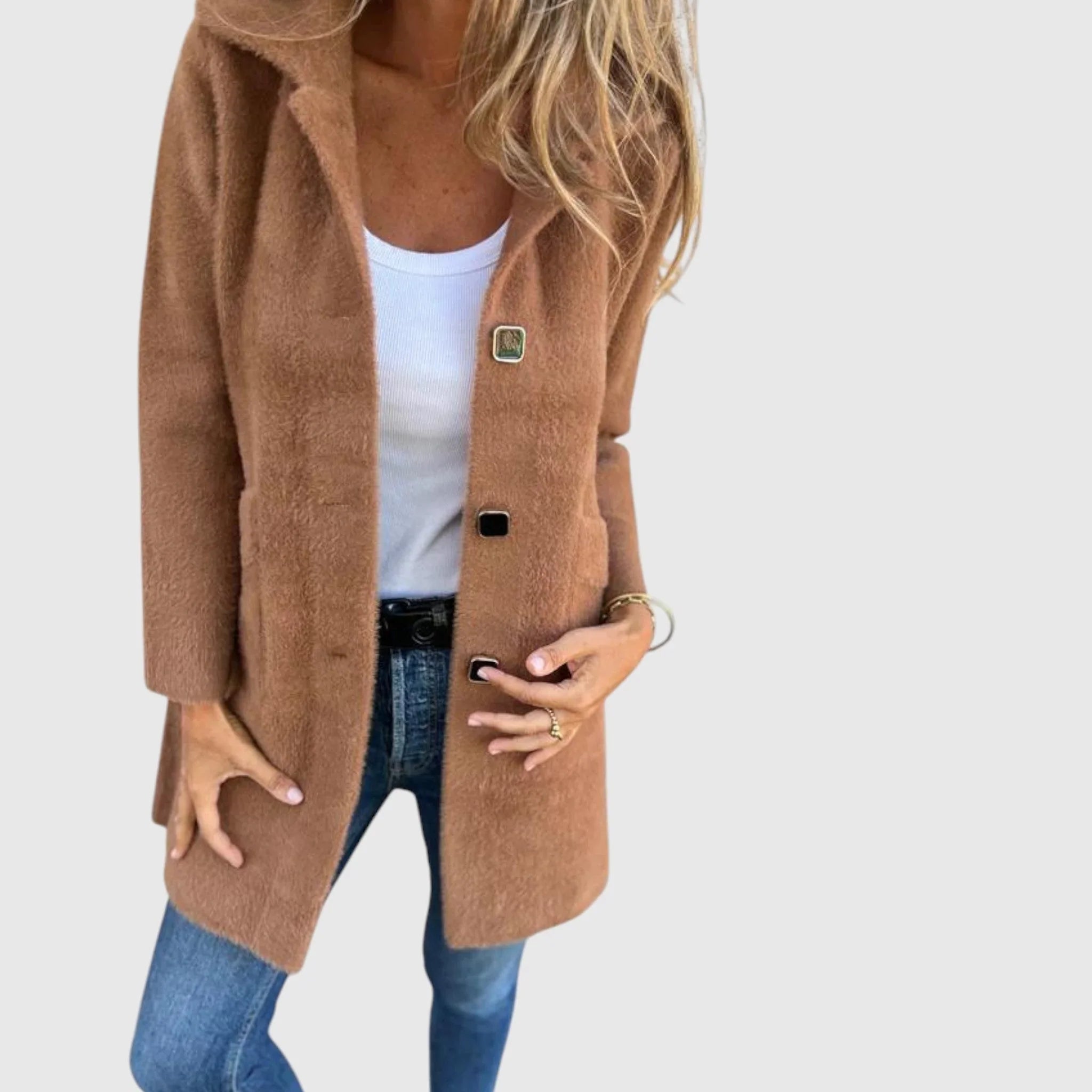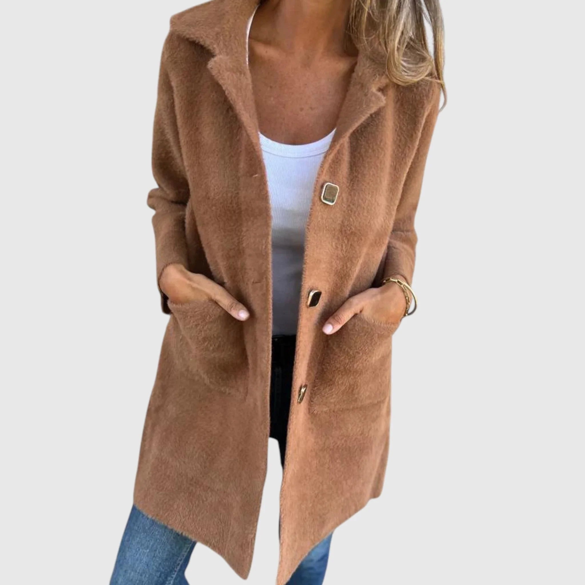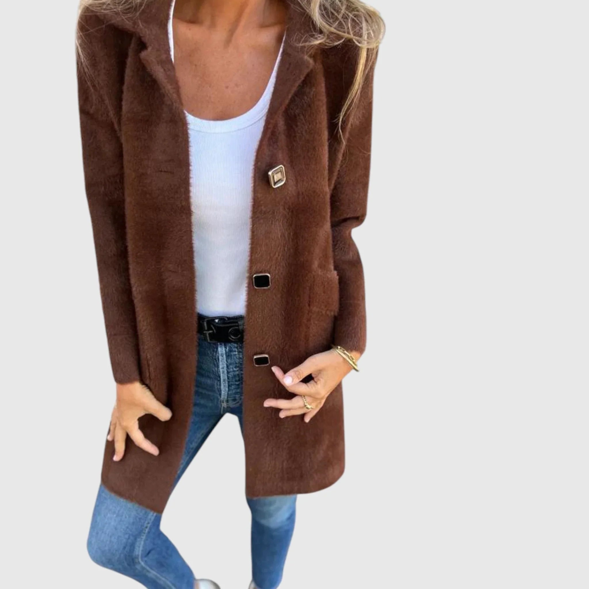 - Teplý a útulný – Poskytuje pohodlí i v chladnějším počasí, aniž byste musela obětovat styl.