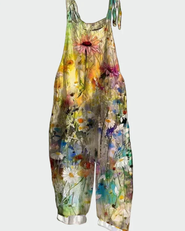 Retro květovaný overal je kouzelný kousek, který připomíná malířský obraz na lehké letní látce. Vykouzlí romantickou a uměleckou atmosféru s výrazným, živým květinovým potiskem, který na vás okamžitě upoutá pozornost.