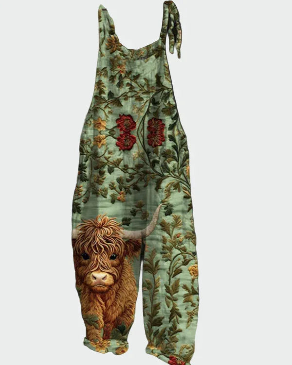 Rustikální umění: Kombinéza s klasickým květinovým potiskem a detailem skotské krávy