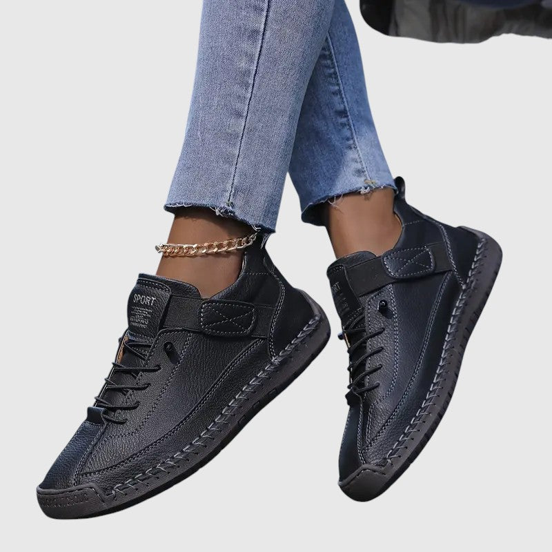 Objevte Elira | Pohodlné tenisky s dobrou oporou – boty, které jsou navrženy pro lehkost, pohodlí a spolehlivou oporu. Ať už při dlouhých dnech strávených na nohou, na cestách nebo při odpočinku – poskytují příjemnou úlevu a univerzální styl, který se dá kombinovat s mnoha outfity. Jsou vyrobeny z lehké, prodyšné kůže, takže vaše nohy zůstanou svěží a suché. S hmotností méně než 0,2 kg jsou obzvláště lehké na nošení.
