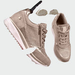Pár sportovních bot s ortopedickým designem, které kombinují pohodlí a klasický styl. Měkká podešev poskytuje oporu a příjemný pocit, zatímco lehká konstrukce je činí ideálními pro každodenní použití. Nadčasový kousek, který dokončuje každý outfit s praktičností a elegancí.