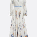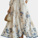 Romantické plisování: Maxi šaty s hlubokým výstřihem a akvarelovým květinovým potiskem
