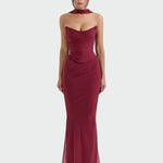Elegantní a výrazné šaty s dlouhým drapovaným střihem představují vrchol večerního looku. Model je navržen s tenkými ramínky a působivou drapovanou linií, která zdůrazní postavu. Drapované detaily na dekoltu a korzetové vázání uprostřed dodávají šatům nádech luxusu a něžné ženy. Maxi délka podtrhuje nadčasovost a působí impozantně.