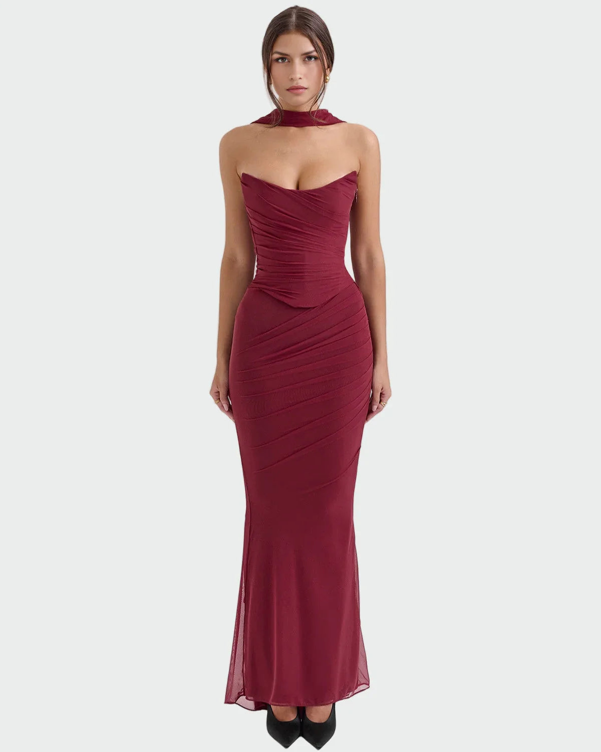 ● Drapované detaily a korzetové vázání: Zdůrazní dekolt a střed těla pro sofistikovaný vzhled.
