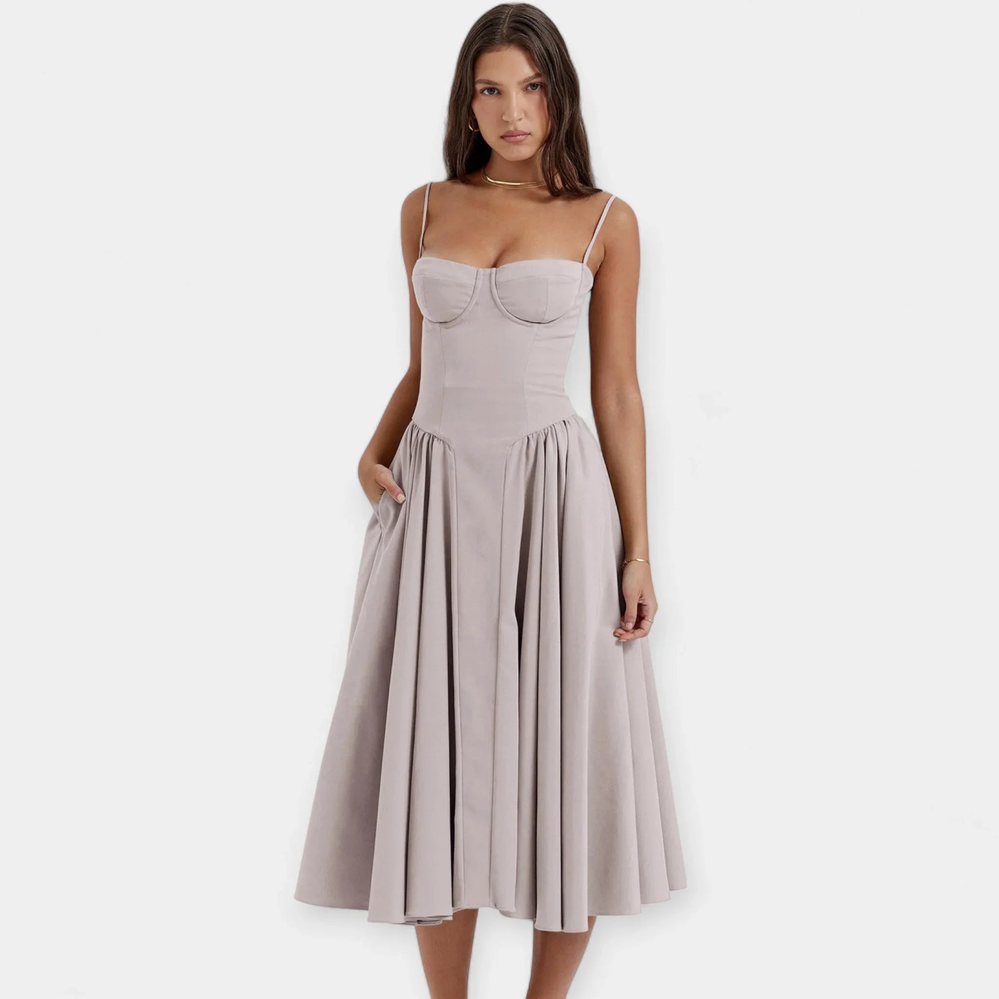 Elegantní a strukturované: midi šaty s korzetem, které jsou ideální pro výrazný vzhled