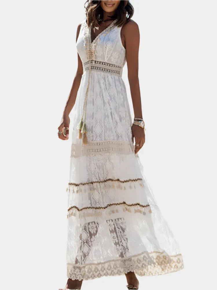 Střih bez rukávů je svěží a ženský pro horké dny. Luxusní krajka se vyznačuje bohémskými vzory dodává šatům jedinečný charakter, který vynikne na pláži i ve městě.