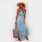 Letní boho styl: Maxi šaty s krajkou a zlatými detaily pro výrazný look