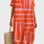 Grafický efekt: Letní tunikové šaty s abstraktním potiskem bloků a širokých pruhů