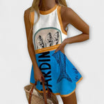 Zábavné a jedinečné: Krátké plážové šaty s potiskem sardinek a kontrastním výstřihem