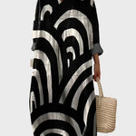 Grafický efekt: Volné tunikové šaty s abstraktním potiskem oblouků a 3/4 rukávy