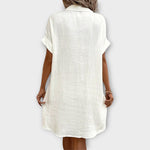 Lehkost a svěžest: Krátké šaty Chemise z texturované látky, s krátkými rukávy a předními kapsami